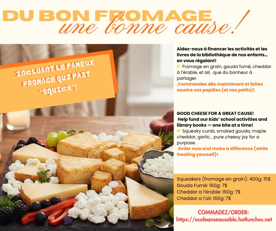 Schedules: Jan-Feb 2025 Hot Lunches Vente de Sirop D’érable de l’APÉ Levée de fonds Mars/March 2025 Hot Lunches Avril/April 2025 Hot Lunches May/June Hot Lunches - Repas Chauds Mai/Juin Sept Hot Lunches Pommes & Poires / Apples & Pears Hot Lunches APE Oct-Nov-Dec Levee de fonds Fromage / Cheese Fundraiser